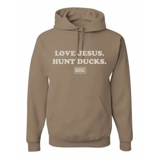 LOVE JESUS. HUNT DUCKS. Hooded Sweatshirt